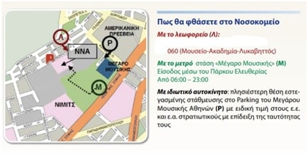 Στους δρόμους που βρίσκονται πέριξ του νοσοκομείου ισχύει σύστημα ελεγχόμενης στάθμευσης από Δευτέρα έως Παρασκευή 09.00-21.00 και Σάββατο 09.00-15.00 (εξαιρούνται Αργίες και Γιορτές).